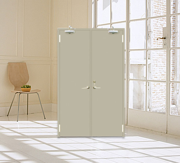 用鋼質材料制作門框、門扇骨架和門扇面板,門扇內(nèi)若填充材料,則填充對人體無害的防火隔 熱材料,并配以防火五金配件所組成的具有耐火性能的門。